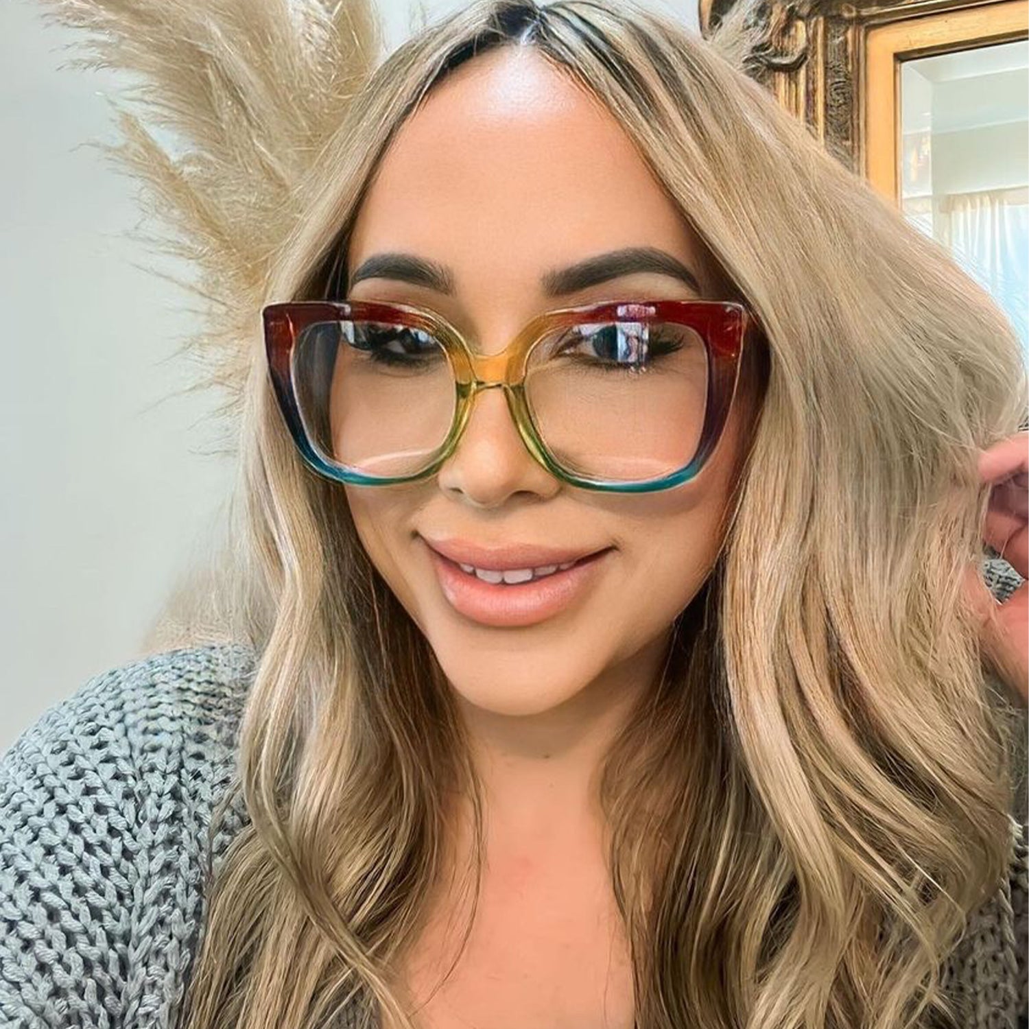 Experience the Audacity with its rainbow colors and oversized square shape. Providing blue-light blocking protection, these sunglasses protect your eyes while giving classic style.