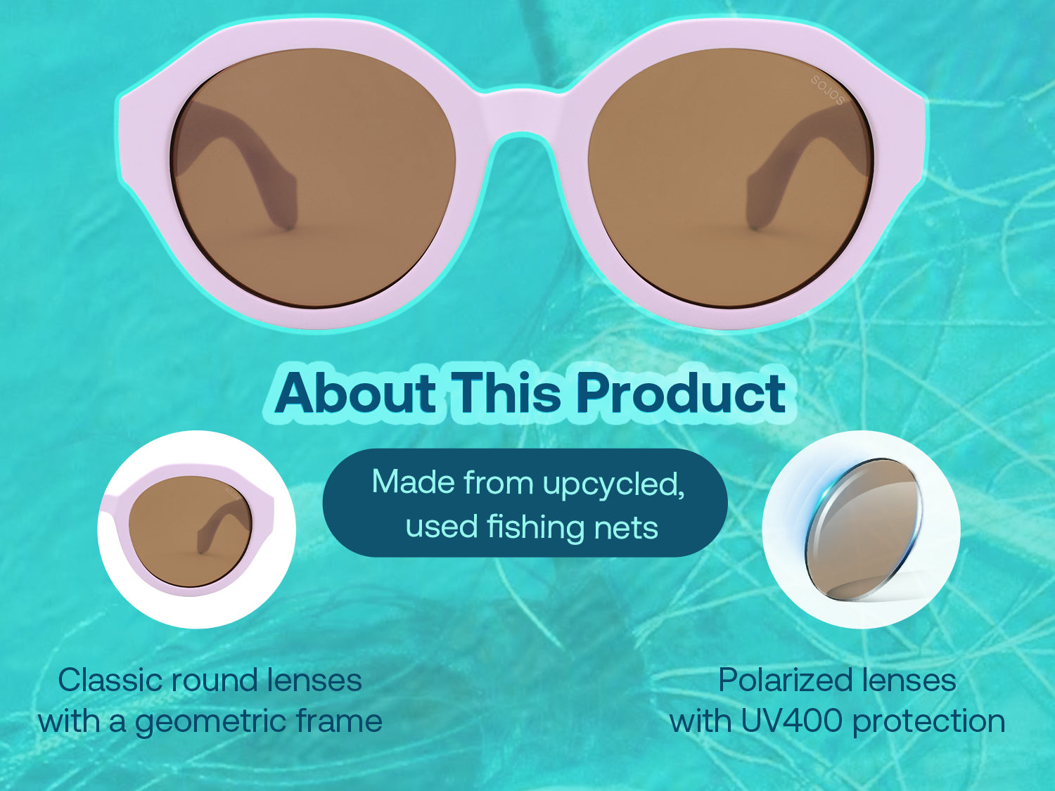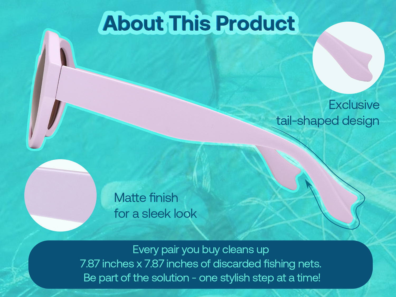 • The frame is made from recycled fishing net, effectively reducing ghost gear from the ocean