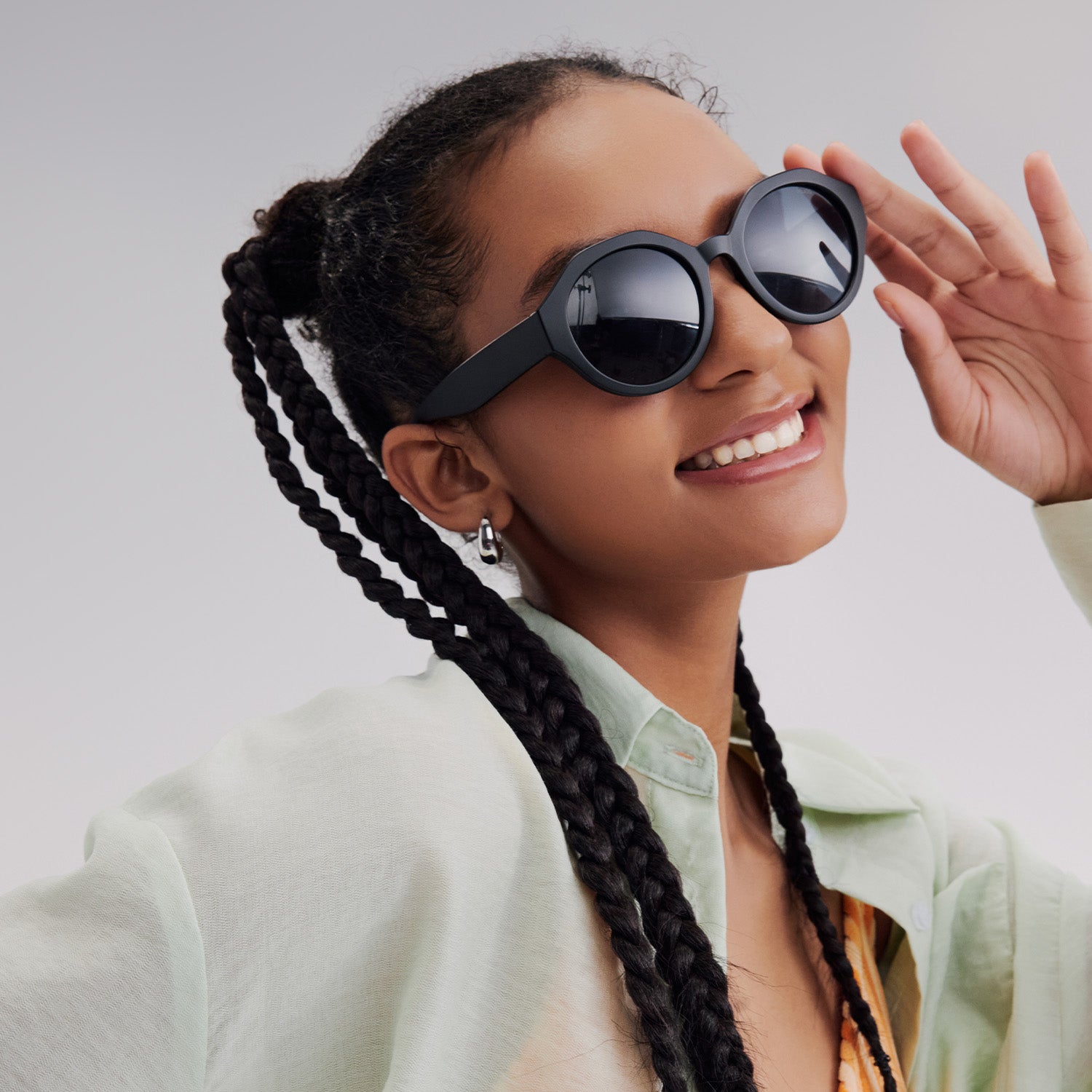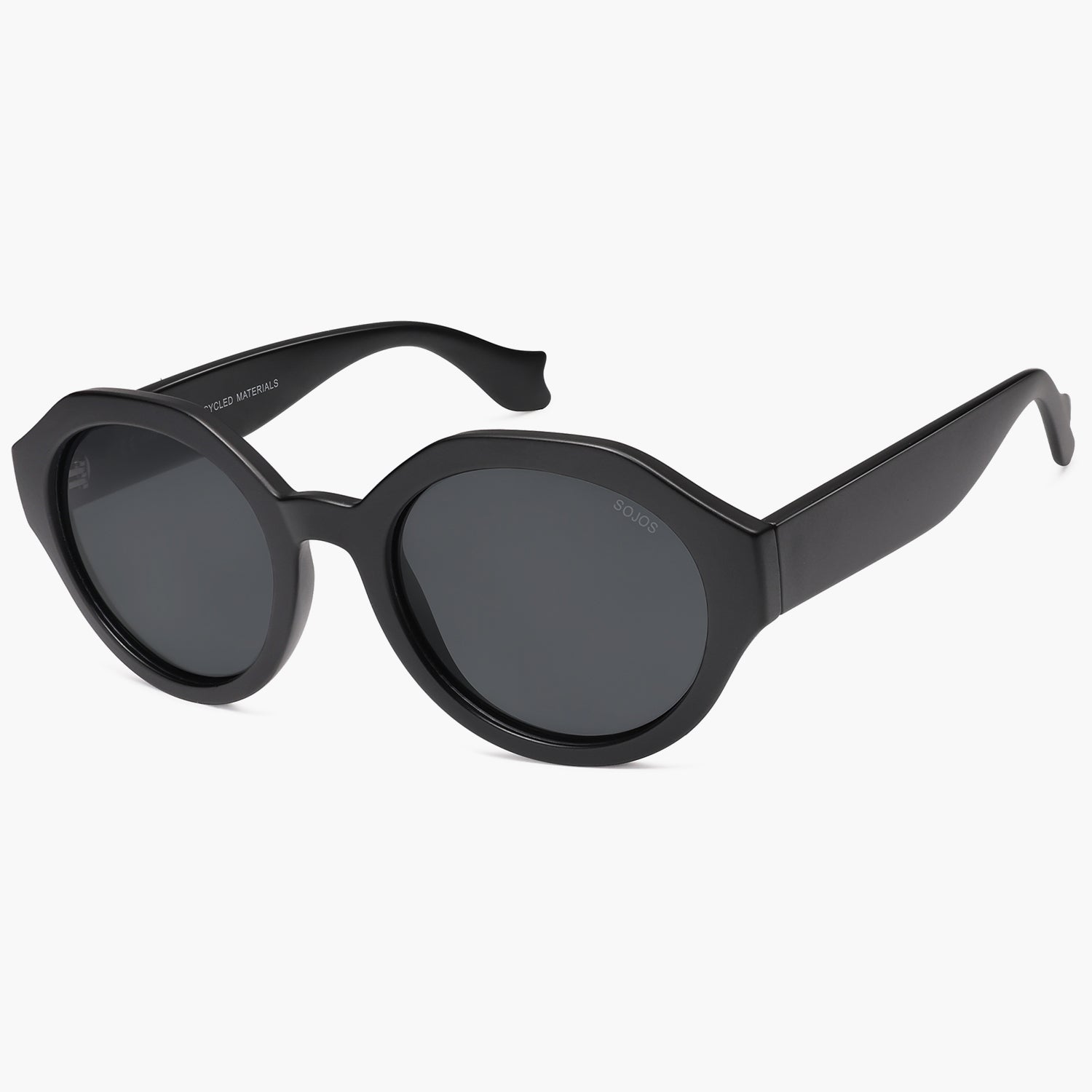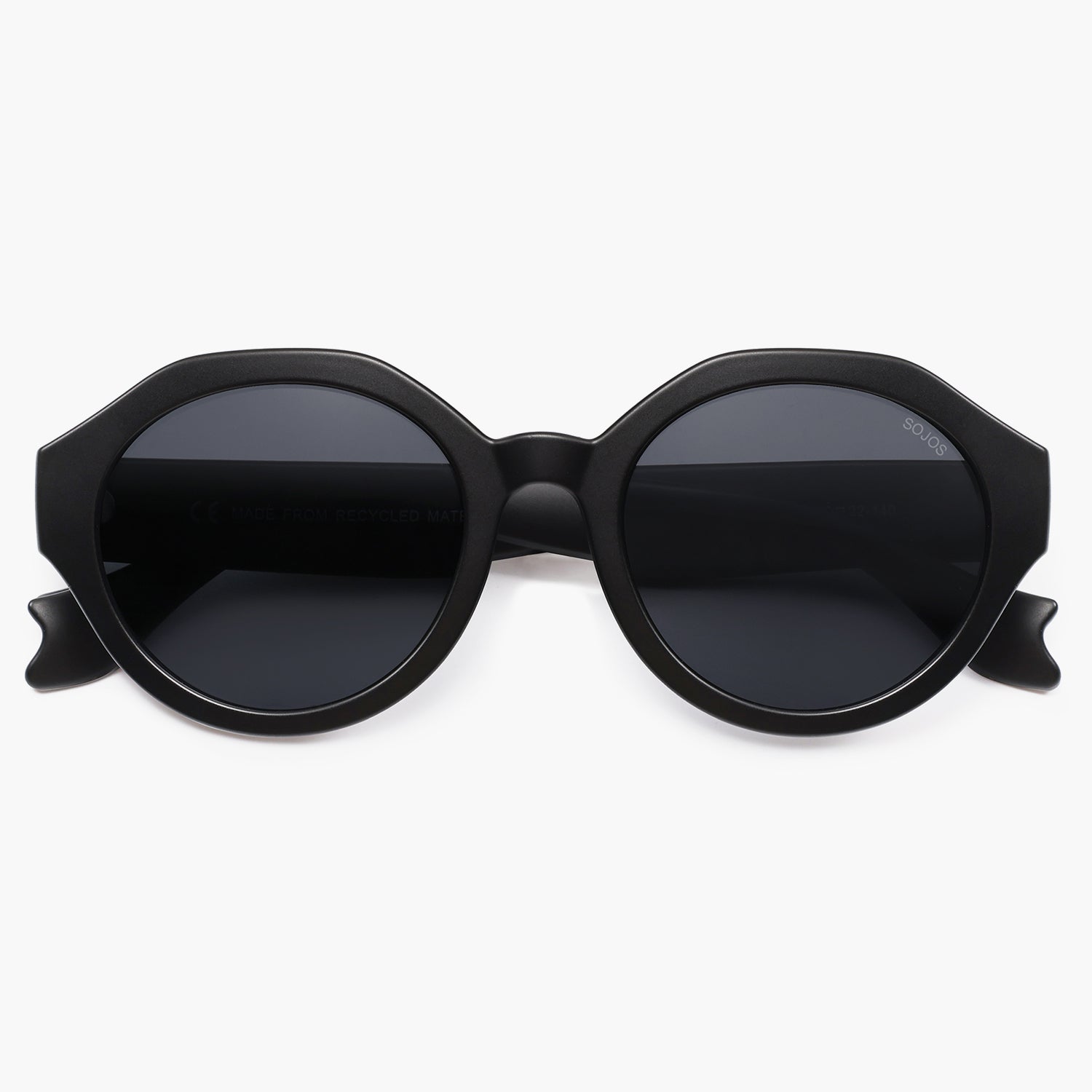 • Classic round lenses with a unique geometric frame